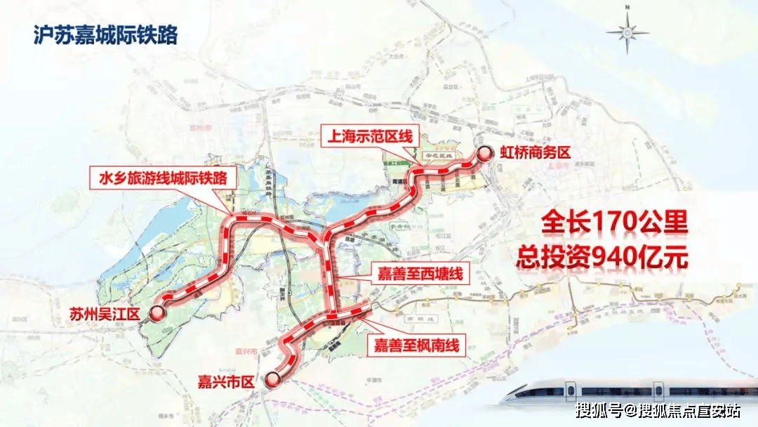 改变重固命运的关键,在于在建的示范区线(沪苏嘉城际铁路)。这条预计2028年通车的轨道交通,将在重固设站,而保利虹桥和颂三期距示范区线站即可抵达虹桥前湾(华漕),3站直抵虹桥枢纽。